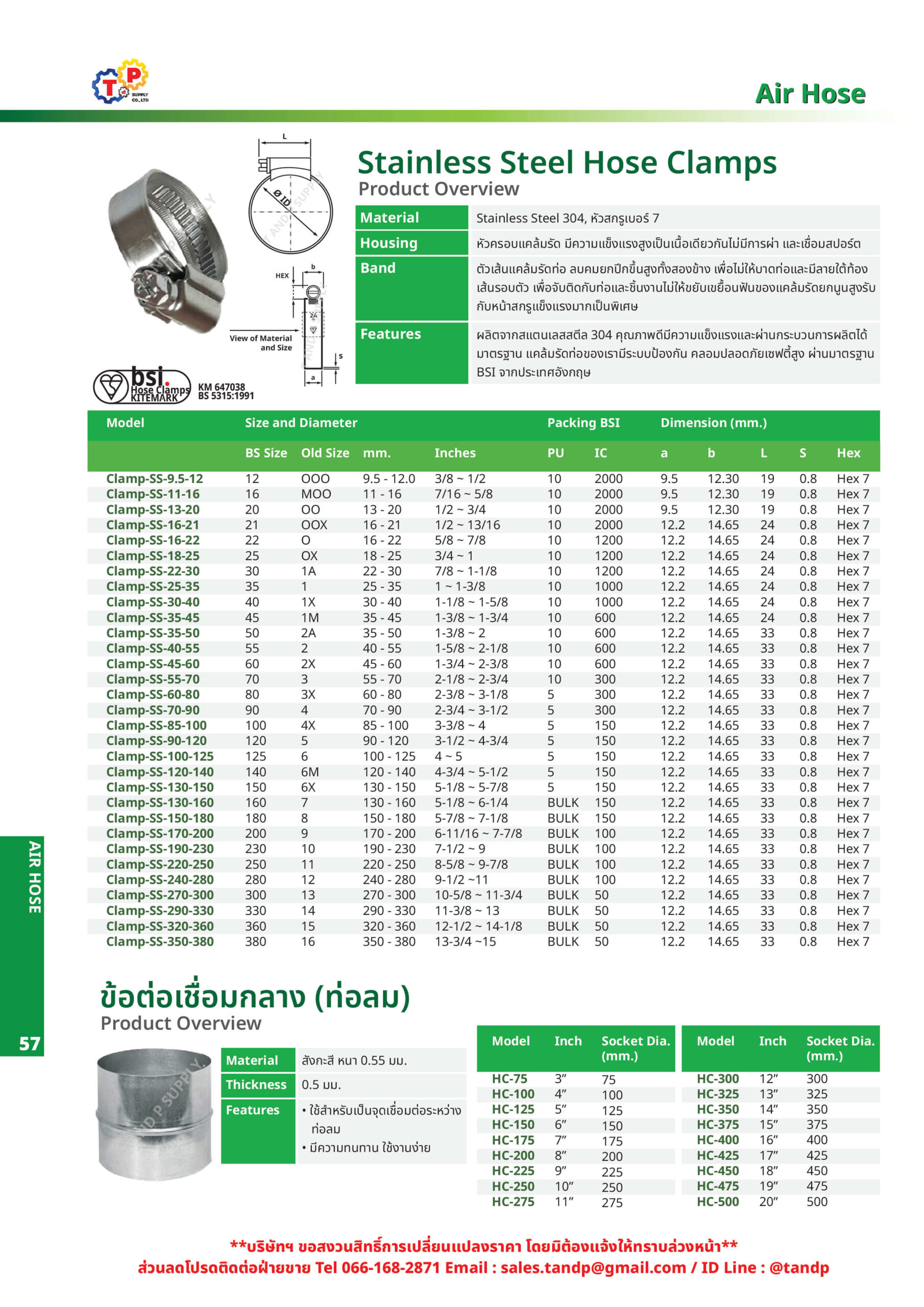 แคล้มรัดท่อสแตนเลส (Stainless Steel Hose Clamps) เป็นอุปกรณ์สำหรับยึดรัด อุปกรณ์ท่อต่างๆ ผลิตจาก สแตนเลส 304