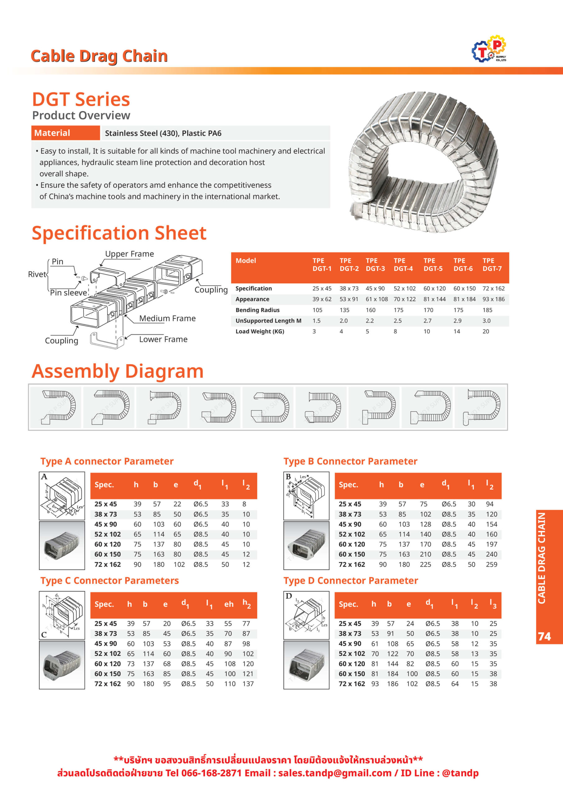 รายละเอียดสินค้า ชุดหัวท้าย รางกระดูกงู โลหะ รุ่น DGT (DGT Cable Drag Chain)