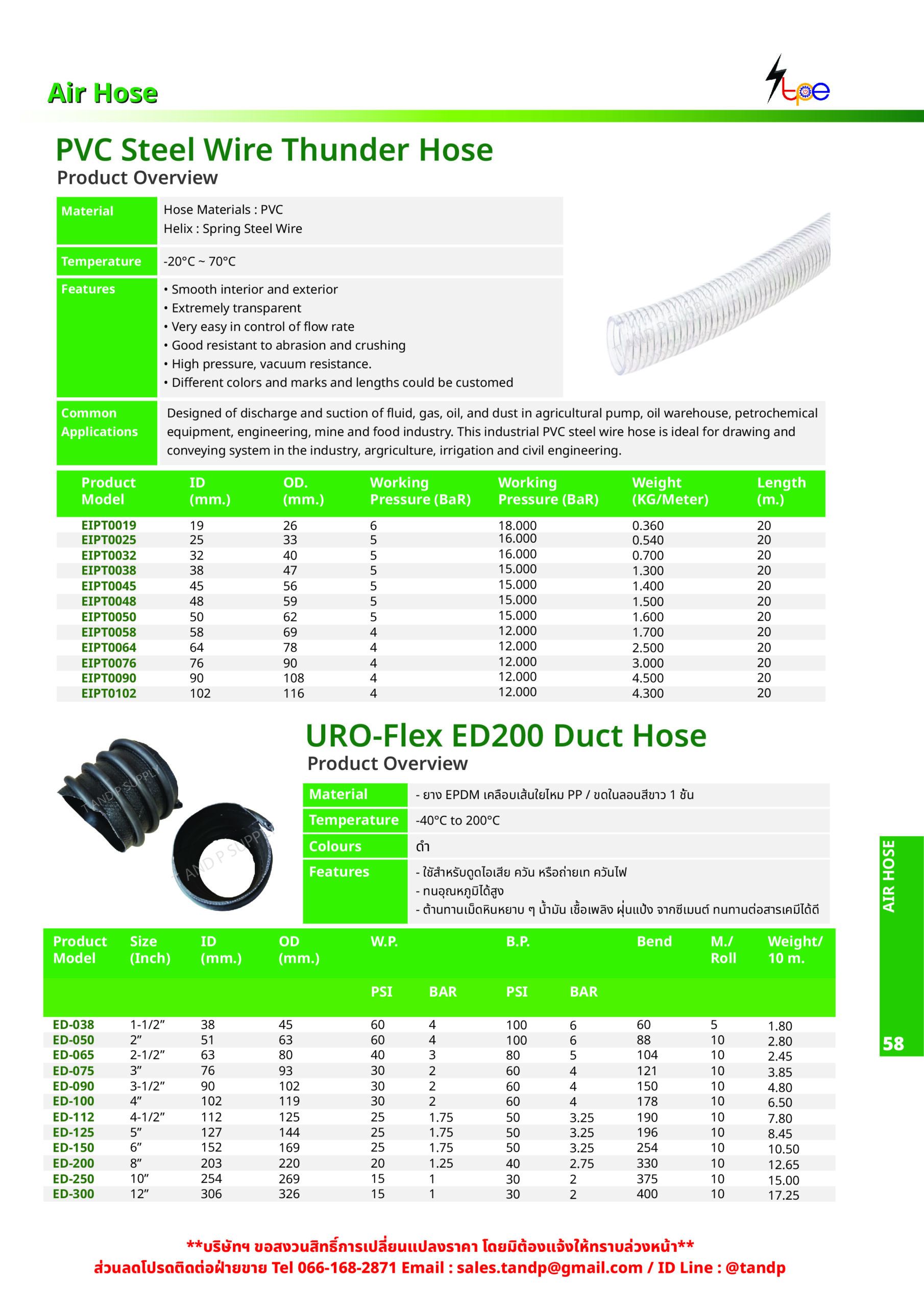 • เหมาะสำหรับใช้ดูดอากาศ ตัวท่อเหมาะสำหรับใช้ดูดไอเสีย ควัน หรือควันไฟ