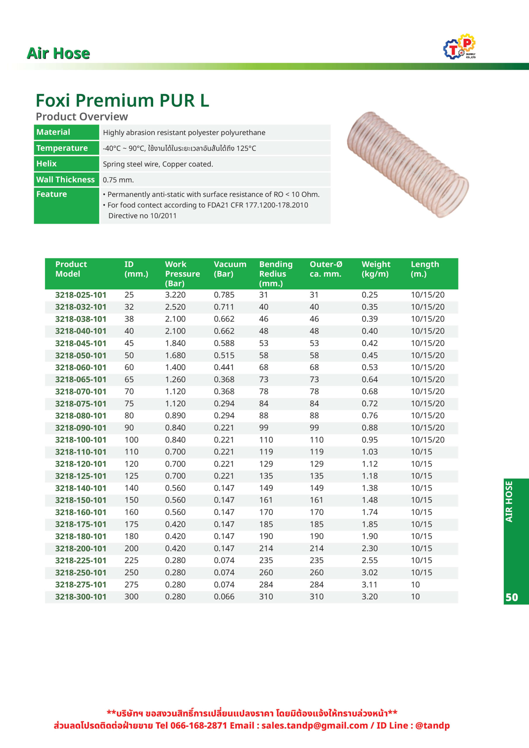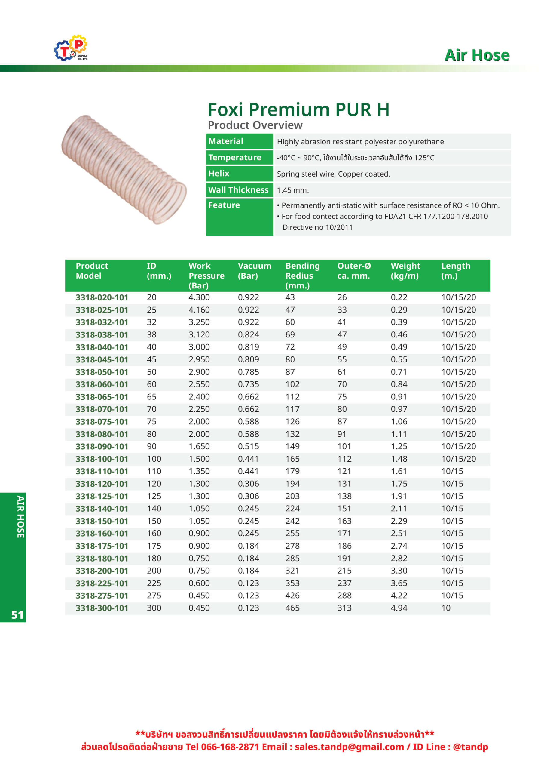รายละเอียดสินค้า ท่อดูดเม็ดพลาสติก รุ่น PoxiPremiun PUR H (หนา 1.45mm.)