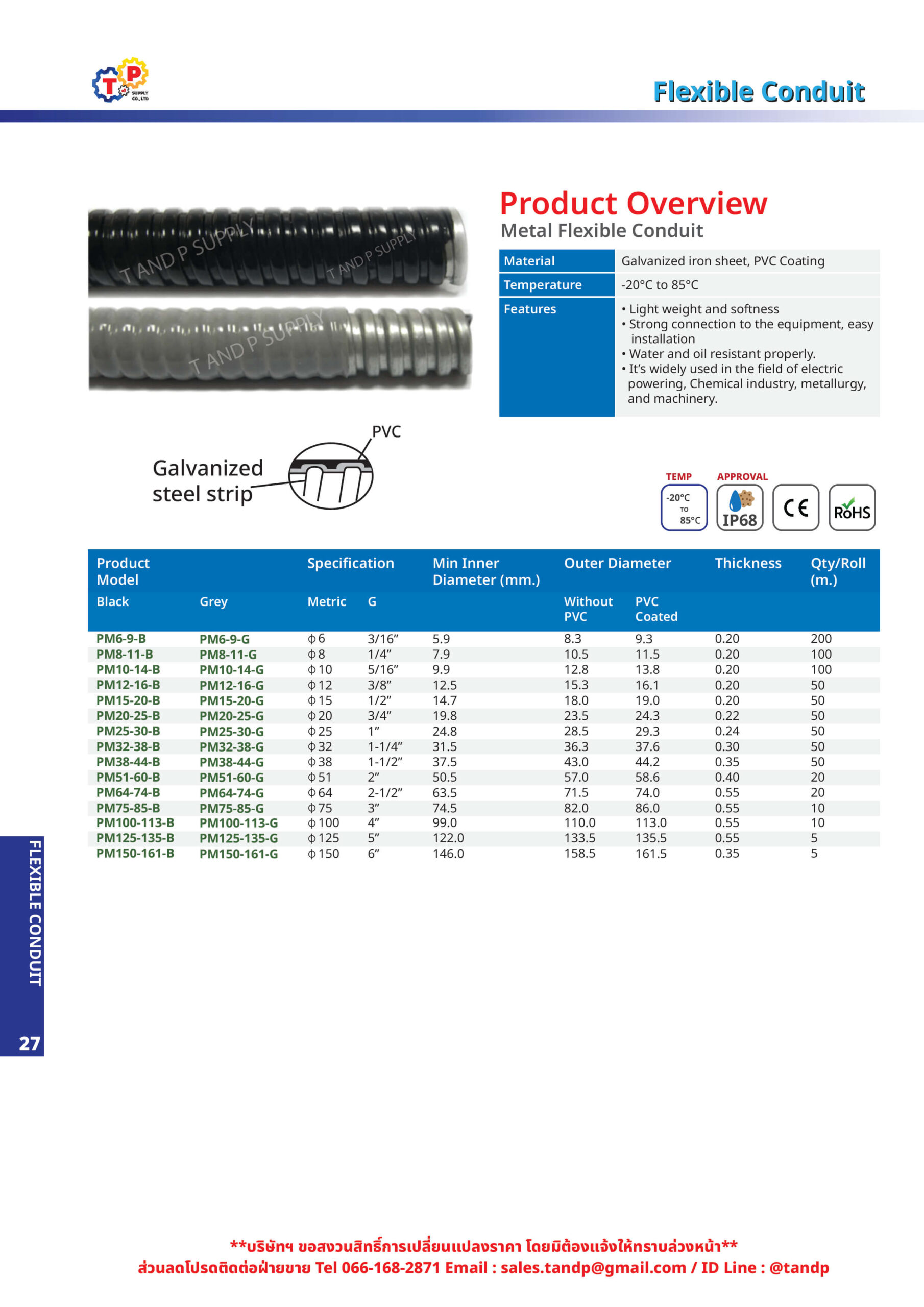 | วัสดุ | • ตัวท่อผลิตจากกัลวาไนซ์ • พลาสติกหุ้มผลิตจาก PVC |