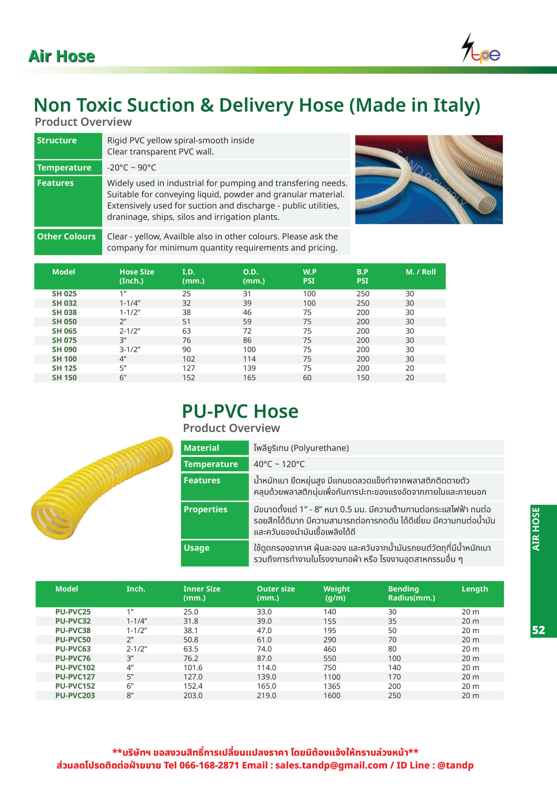 | การใช้งาน | • ยืดหยุ่น ดัดโค้งงอได้ • ผิวด้านในเรียบ ฝุ่นติดค้างอยู่ในท่อได้ยาก • ใช้งานได้หลากหลาย เช่น ดูดลม ดูดฝุ่น ดูดขี้เลื่อย • มีขนาดใหญ่ถึง 8″ |